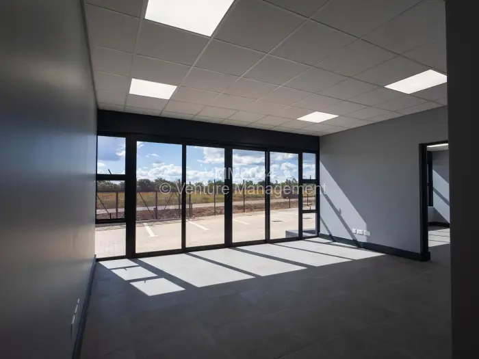The facility offers contemporary finishes, aluminium glass windows for natural light, plus a functional office component with reception, offices, ablutions, kitchen, boardroom and open plan mezzanine workspace.